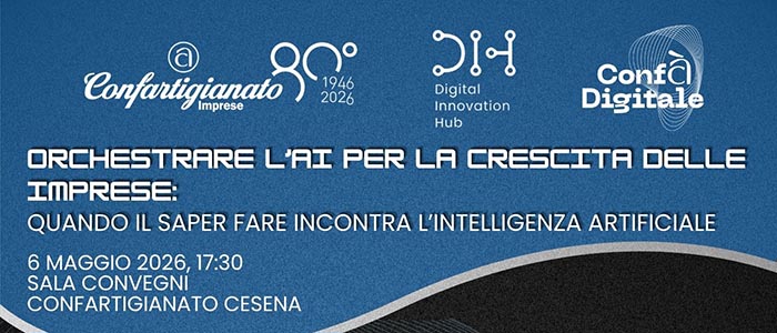 Un confronto sulle applicazioni concrete dell’intelligenza artificiale a supporto della crescita delle micro e piccole imprese. È questo il tema al centro dell’incontro promosso da Confartigianato Federimpresa Cesena dal titolo “Orchestrare l’AI per la crescita delle imprese: quando il saper fare incontra l’intelligenza artificiale”, in programma il 6 maggio 2026 alle ore 17.30 nella sala convegni di Confartigianato Cesena.